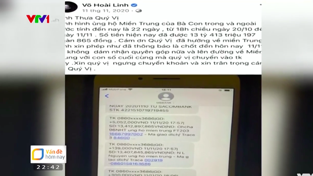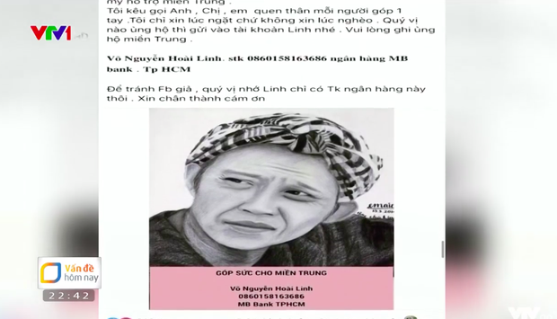 Sau Thủy Tiên, nghệ sĩ Hoài Linh cũng được chương trình gọi tên với lời dẫn: "Còn nghệ sĩ Hoài Linh đã kêu gọi số tiền hơn 14 tỷ đồng. Nhưng sau 6 tháng, tiền cứu trợ vẫn chưa đến được nơi cần đến. Chỉ đến khi dư luận lên tiếng, ông mới vội vàng giải ngân toàn bộ trong chưa đầy 1 tuần lễ."