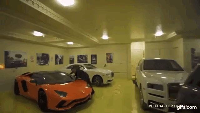 Sau khi tham quan không gian biệt thự, Vũ Khắc Tiệp xuống cả hầm để xe để quay. Tại đây có 6 chiếc ô tô hạng sang. Trong đó có 3 chiếc Rolls Royce, 1 chiếc Ferrari, 1 chiếc Porsche, 1 chiếc Range Rove.