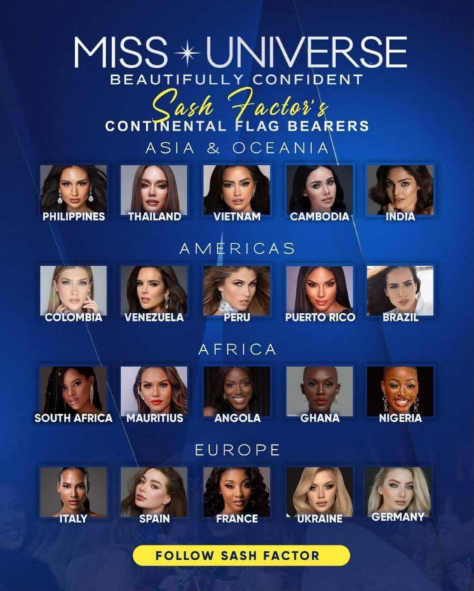 Ở khu vực châu Âu, các đại diện sáng giá gồm Ukraine, Đức, Pháp, Tây Ban Nha, Italy. Trong khi đó, những đại diện hứa hẹn tỏa sáng ở nhóm thí sinh châu Phi gồm Nam Phi, Mauritius, Angola, Ghana, Nigeria.