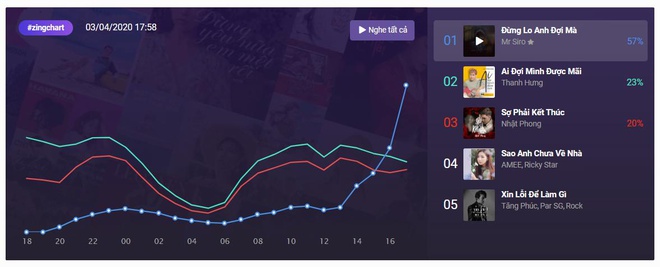 04/04/2020 20:50Vừa ra mắt 1 ngày, 'Đừng lo anh đợi mà' của Mr Siro đã leo thẳng top 1 bảng xếp hạng