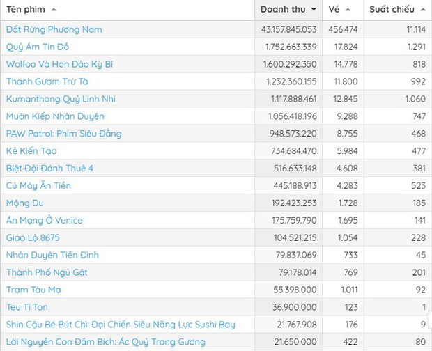 16/10/2023 21:00Vướng lùm xùm, Đất rừng phương Nam vẫn nhấn chìm loạt đối thủ, doanh thu cao gấp 450 lần phim Việt 18+