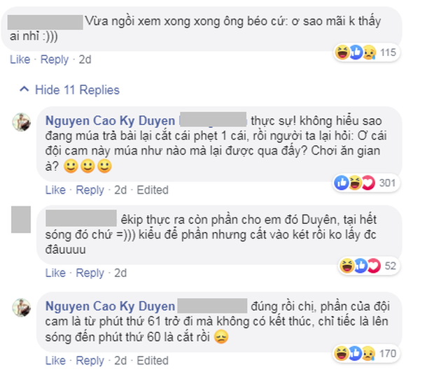 Chính vì vậy, với việc 3 đối thủ còn lại quá mạnh cộng thêm phản ứng của Kỳ Duyên thì nhiều khán giả tin chắc rằng kết quả mùa giải 2019: ""Ai thắng cũng được, trừ đội Cam ra"!