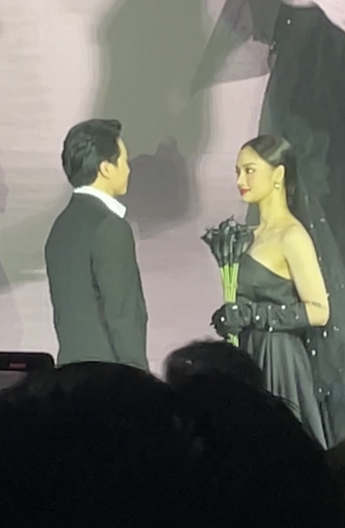 Dàn phù dâu sau đó đã tiến đến mở cửa và dẫn cô dâu Miu Lê tiến đến been cạnh chú rể Karik. Hai người sau đó trao cho nhau ánh nhìn vô cùng ngọt ngào.