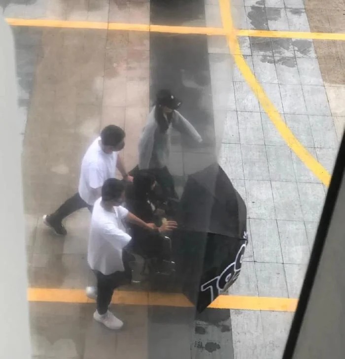 Trong bức ảnh vừa được lan truyền trên Weibo, blogger cho biết mình bắt được khoảnh khắc Dương Tử được nhiều trợ lý hỗ trợ khi đến trường quay. Có vẻ như vết thương vẫn chưa lành hẳn cho nên cô phải ngồi trên xe lăn, nhân viên đoàn phim ở ngay bên cạnh và giúp cô che chắn kỹ lưỡng.