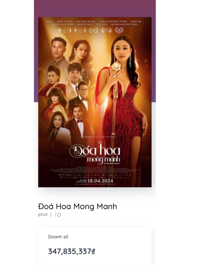Sau một mùa phim Tết tương đối thành công, thị trường điện ảnh Việt bước vào giai đoạn ảm đạm khi hàng loạt tác phẩm gần đây đều chịu thất bại ê chề về mặt doanh số. Trong đó, thành tích thê thảm nhất đang là Đóa Hoa Mong Manh của đạo diễn Mai Thu Huyền. Theo số liệu từ Box Office Vietnam, tác phẩm chỉ thu về gần 350 triệu đồng sau tròn một tuần ra rạp. Hiện tại, số lượng suất chiếu và vé bán ra trong ngày của tác phẩm đang rất thấp. Tính đến 14h30 ngày 19/4, phim mới bán được 53 vé trên tổng 134 suất chiếu trên cả nước.