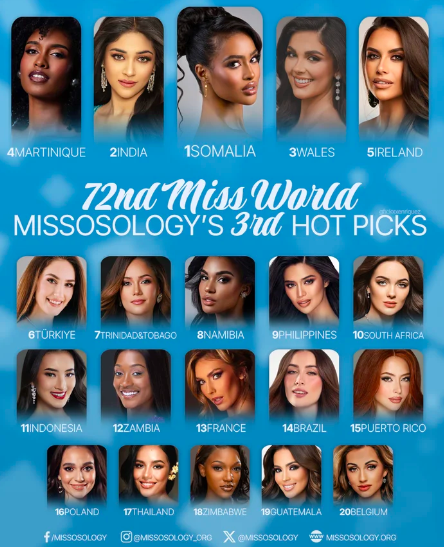Đáng chú ý, dù gặt hái thành tích liên tiếp và nhận được sự ủng hộ mạnh mẽ từ khán giả trong nước, Ý Nhi vẫn không được chuyên trang sắc đẹp Missosology đánh giá cao. Trong bảng dự đoán Top 20 ứng viên tiềm năng cho ngôi vị hoa hậu Miss World 2025 vừa công bố, đại diện Việt Nam hoàn toàn vắng bóng. Thay vào đó, vị trí dẫn đầu thuộc về đại diện đến từ Somalia. Các thí sinh còn lại trong Top 5 gồm đại diện Ấn Độ, Wales, Martinique và Ireland.
