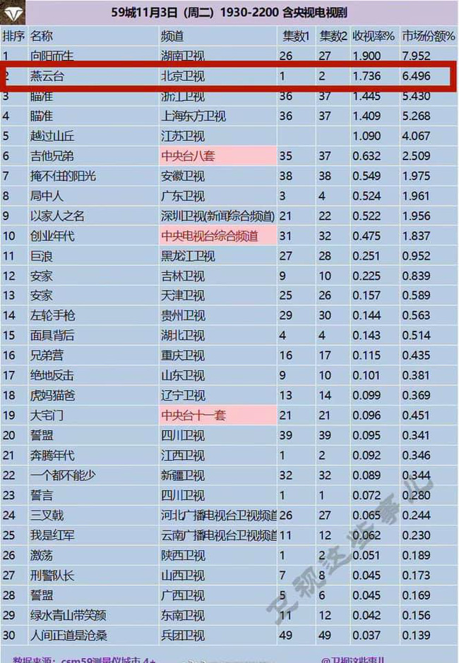 Rating của "Yến Vân Đài" mở đầu với kết quả tốt.