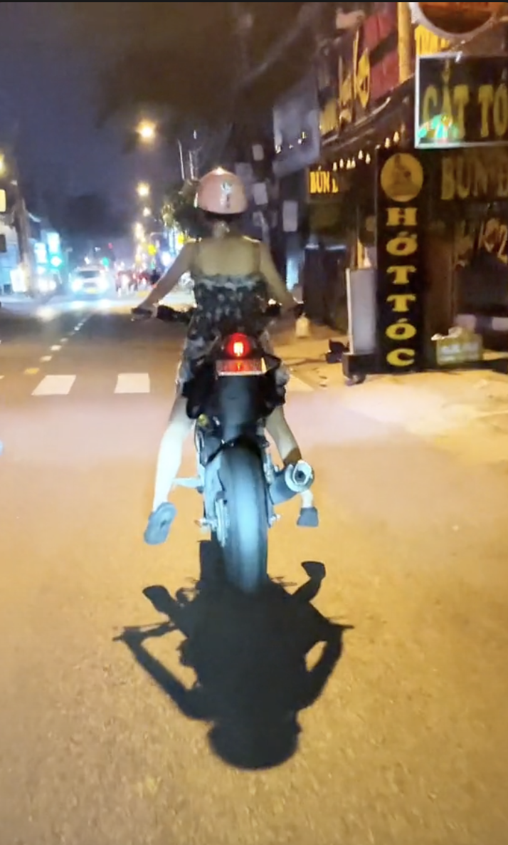 Mới đây, một cô gái có vóc dáng nhỏ bé, mảnh mai chạy xe phân khối lớn bỗng thu hút sự chú ý trên MXH. Trong các đoạn clip của mình, cô gái chủ yếu đăng cảnh chạy xe trên đường, thể hiện niềm đam mê với chiếc xe “cào cào” của mình. Song điều đáng nói lại là cô nàng có chiều cao khá khiêm tốn, thậm chí còn không thể chống chân khi ngồi trên xe. Điều này khiến không ít người tò mò khi gặp đèn đỏ sẽ làm thế nào.