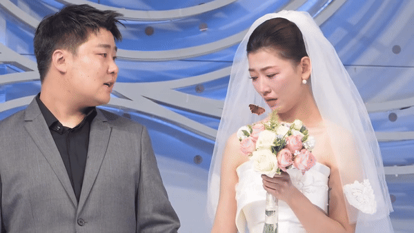 Ở giây phút này, cô dâu đang mỉm cười bỗng chuyển sang trạng thái bất ngờ rồi bật khóc, gương mặt co rúm vì xúc động, ánh mắt dõi nhìn theo con bướm đang bay. Chú rể đứng một bên cũng im lặng nhìn con bướm, đôi mắt đỏ hoe.