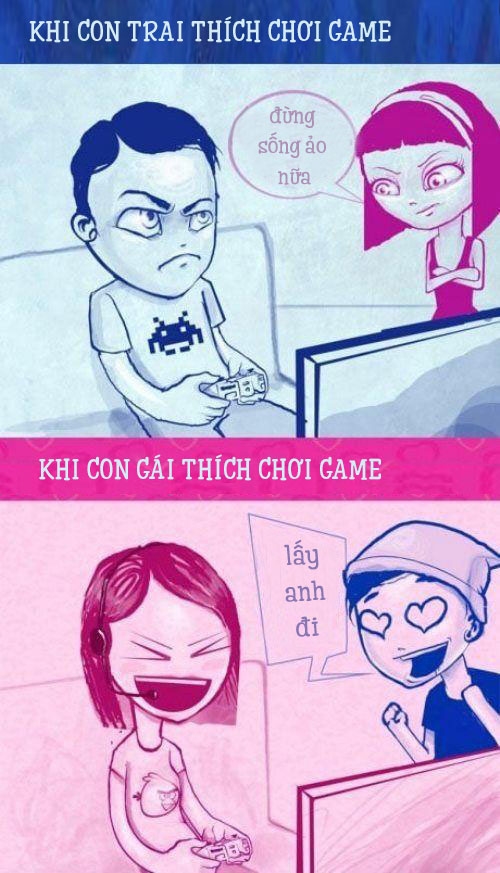 Bọn con trai rất ấn tượng với những cô gái thích chơi game hoặc những trò dành cho đàn ông. Nhưng ở phía bên kia. các cô gái không thích con trai chơi trò gì hết. |