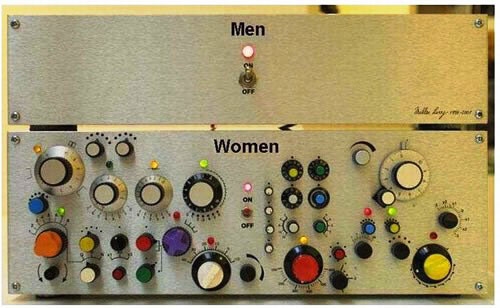 Một bức tranh khá sâu sắc về sự khác biệt của 2 giới. Vâng, đàn ông chỉ cần 1 công tắc để khởi động tất cả các thứ, đàn bà thì... vô số. |