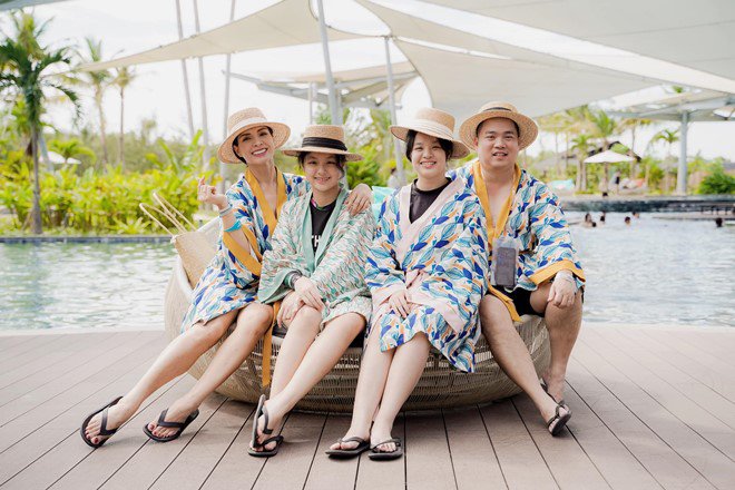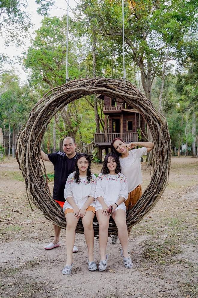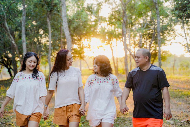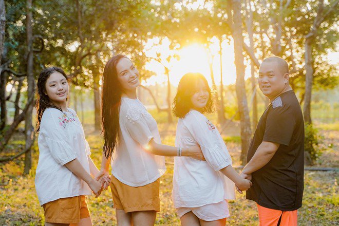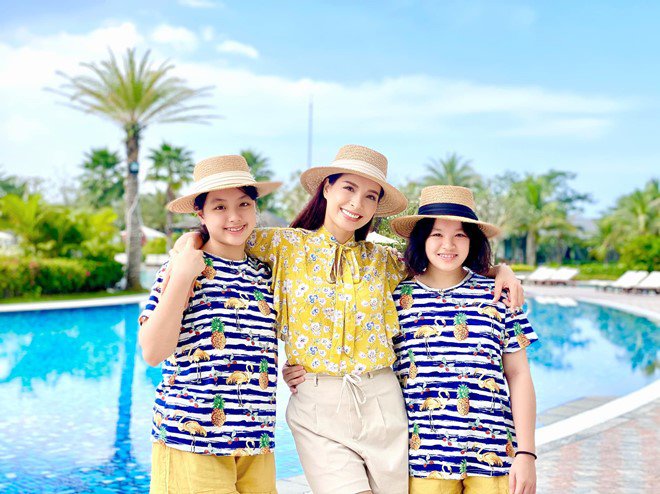 Trong nhiều tấm hình khác của gia đình, có thể thấy sao nhí Bố ơi mình đi đâu thế giờ đã cao hơn cả chị gái ruột - Suli và gần bằng mẹ Thúy Hạnh. Từ năm ngoái, siêu mẫu đã ngắm hình 2 con và cho biết: "8 năm trước nàng chị kẹp cổ nàng em, sau 8 năm thì 2 nàng đổi chỗ, nàng em kẹp lại cổ nàng chị. Nàng em giờ toàn bị nhầm là chị vì vừa cao vừa to hơn chị ".