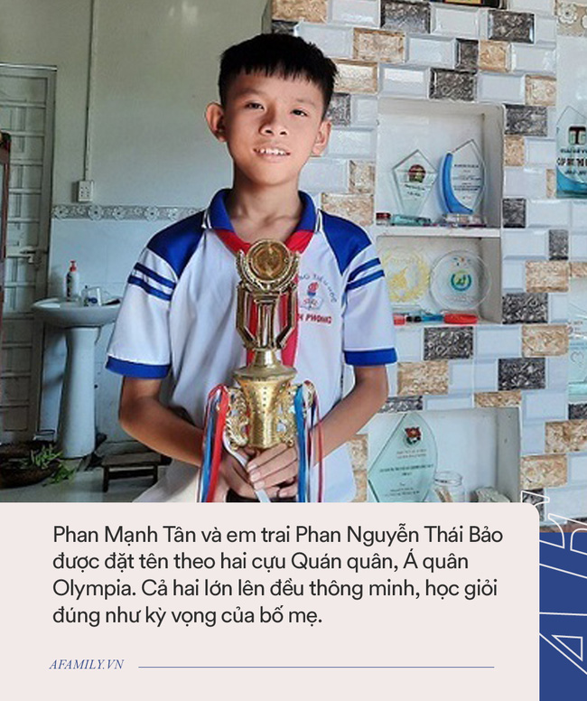 Theo đó, ông Huy đặt tên con trai lớn là Phan Mạnh Tân, còn con trai út là Phan Nguyễn Thái Bảo, lấy cảm hứng từ tên của Á quân Olympia năm 2004 Nguyễn Nguyễn Thái Bảo. Tên vận vào đời, cả Tân và Bảo lớn lên đều thông minh, học giỏi như những đàn anh Olympia.