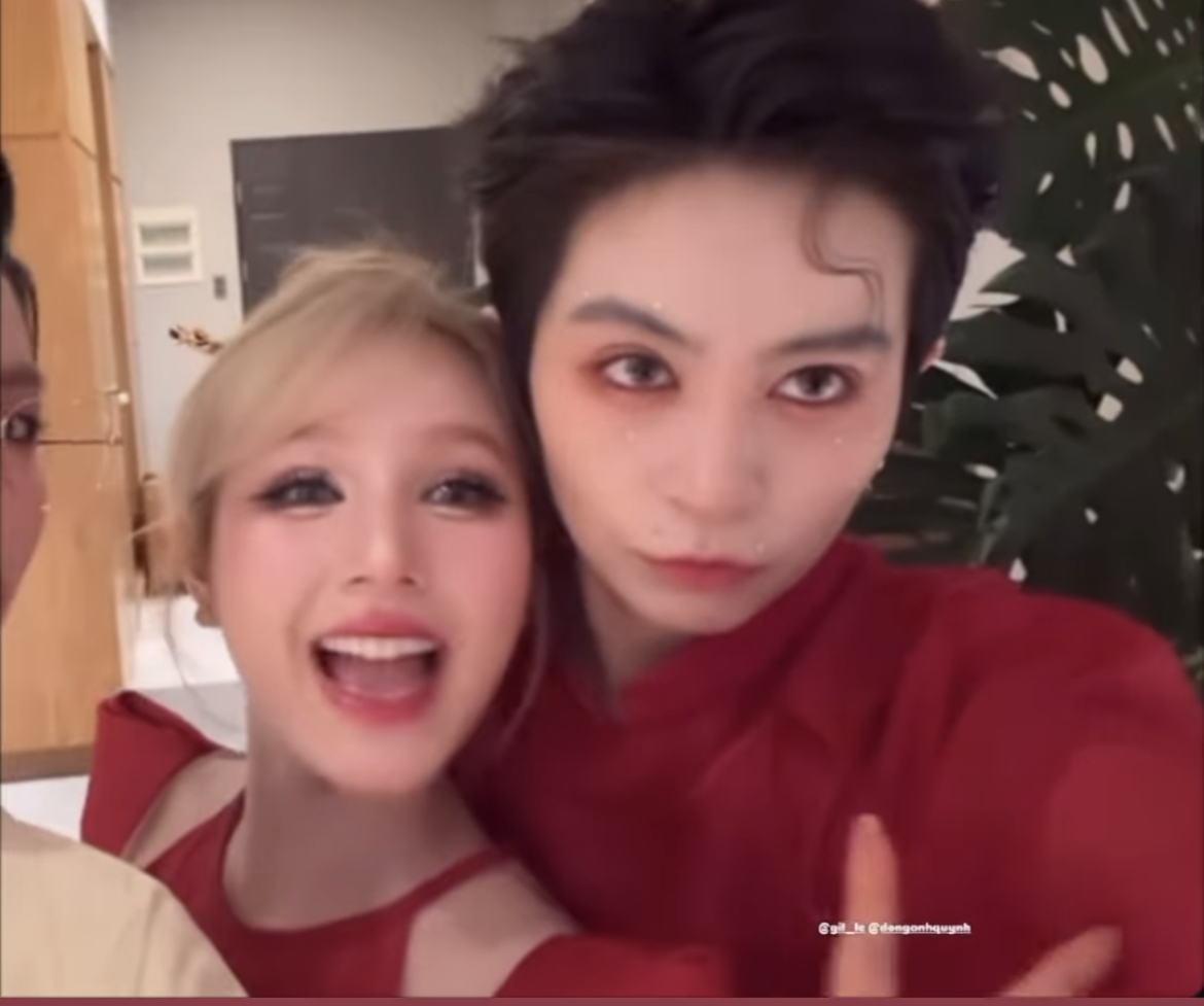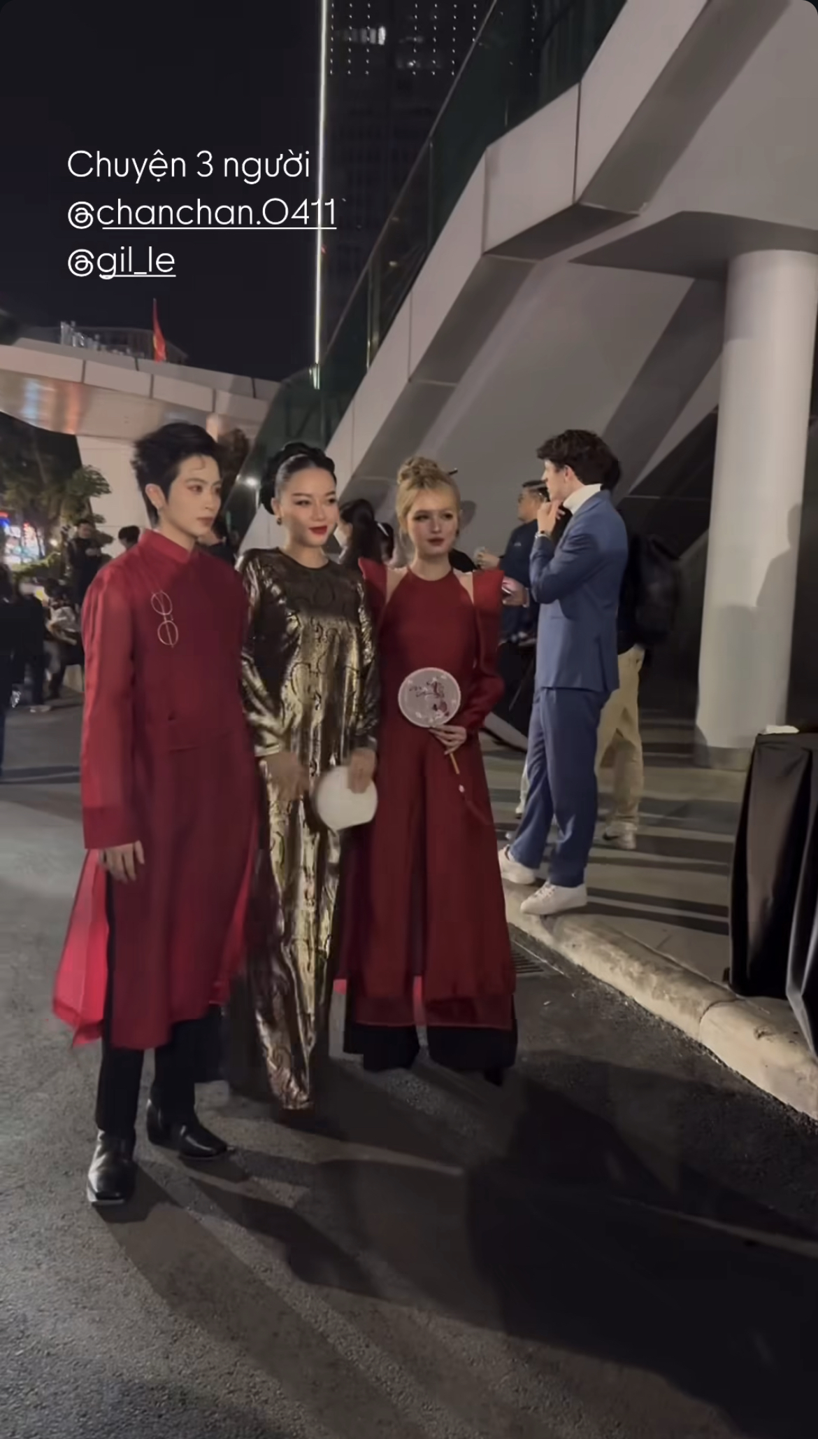 Cũng như nhiều lần trước đó, Xoài Non sánh đối cùng với Gil Lê và dàn chị đẹp. Cả hai mặc cùng trang phục áo dài màu đỏ tone sur tone, khiến fan đồng loạt ship như đang chụp ảnh cưới.