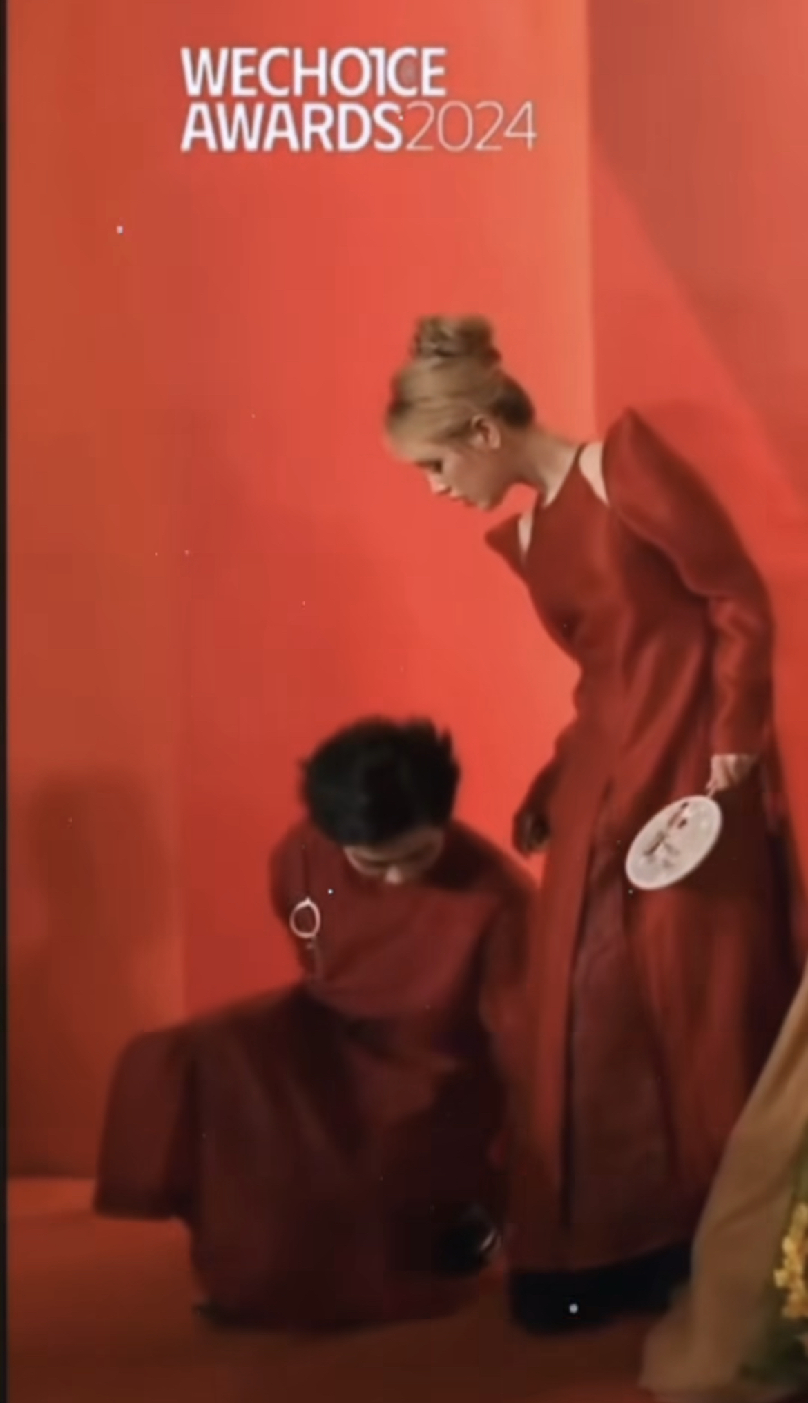 | Gil Lê có nhiều hành động tinh tế với Xoài Non trên thảm đỏ WeChoice Awards 2024. (Nguồn: Đi Soi Sao Đi) |
