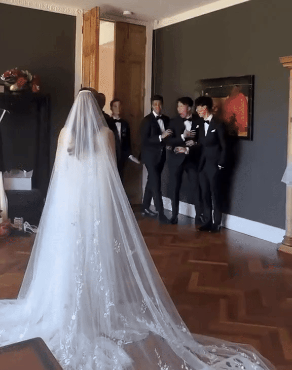 Cô dâu cũng có chia sẻ rõ hơn, vì dàn phù rể là bạn thân nhiều năm của mình nên cô muốn họ nhìn thấy mình mặc váy cưới đầu tiên. Và đó cũng cũng là một trong những khoảnh khắc yêu thích nhất của cô dâu trong buổi sáng ngày cưới.