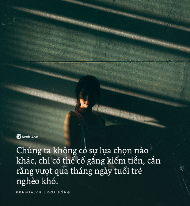 Chúng ta không có sự lựa chọn nào khác, chỉ có thể cố gắng kiếm tiền, cắn răng vượt qua tháng ngày tuổi trẻ nghèo khó.