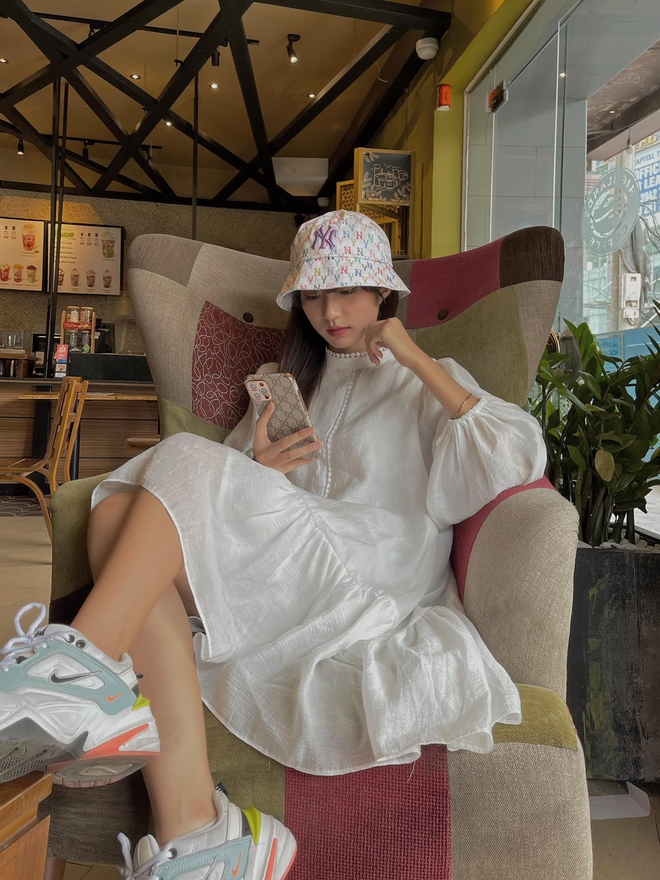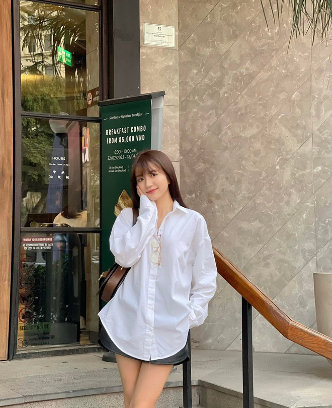 Ngoài crop top khoe eo thon dáng chuẩn, Ngọc Huyền còn diện những bộ cánh rộng rãi thoải mái, sang chảnh vô cùng. Váy liền dáng rộng điểm thêm chi tiết tay bồng điệu đà hay style nữ sinh với sơ mi trắng và chân váy mini... nhìn Ngọc Huyền lúc nào cũng ngọt ngào nữ tính qua mỗi set đồ xuống phố.