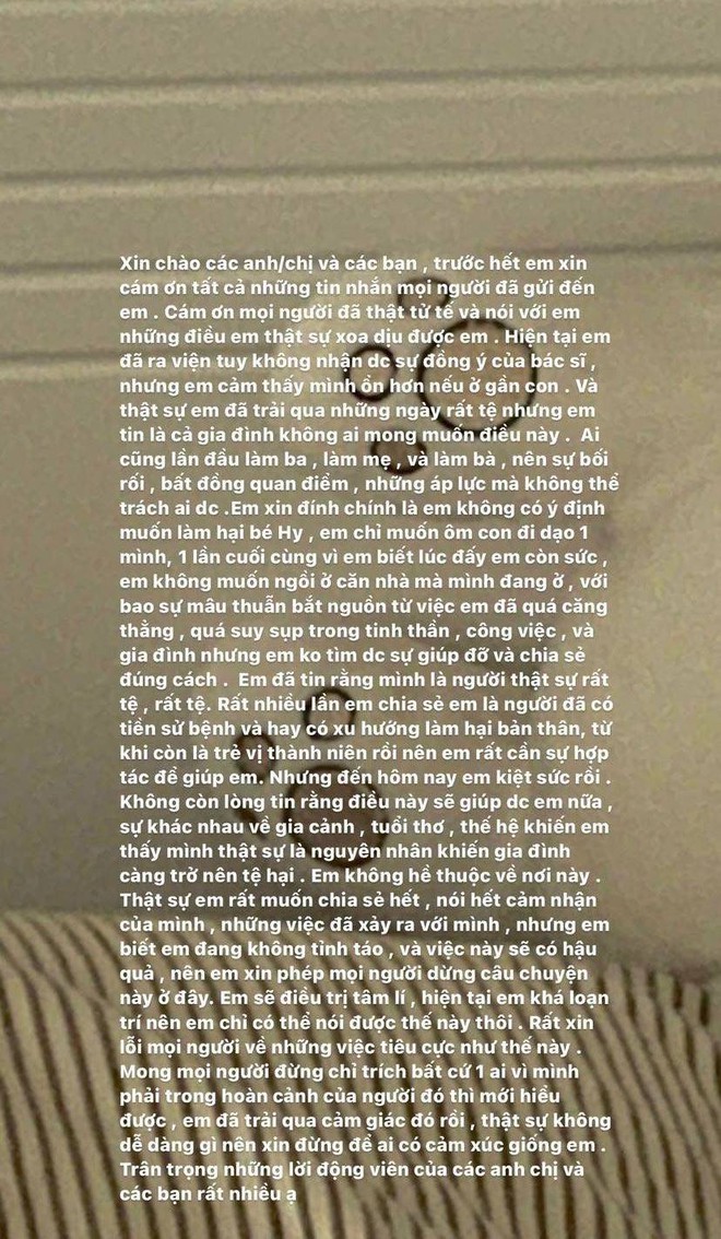 Đi đến kết luận, Lâm Minh cho biết cô và con trai sẽ rời khỏi nhà của Decao vì cô không chấp nhận bạo lực, nhưng đồng thời kêu gọi mọi người đừng tiếp tục chỉ trích chồng. Theo cập nhật từ story mới nhất của Lâm Minh, cô thực sự đã cùng con di chuyển đến một nơi khác.