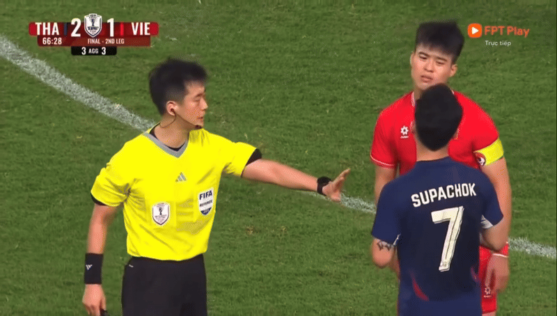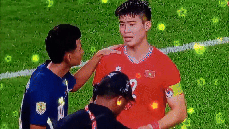 Đó là trong tình huống đang check VAR, Duy Mạnh với tư cách đội trưởng của đội tuyển Việt Nam đã phản ứng lại khi nói chuyện với Supachok. Anh chàng liên tục nói chuyện với cầu thủ đội bạn, khiến netizen hết sức bất ngờ trước khả năng ngoại ngữ của Duy Mạnh, đồng thời phong ngay cho anh chàng 4 chữ "ông hoàng ngoại ngữ"