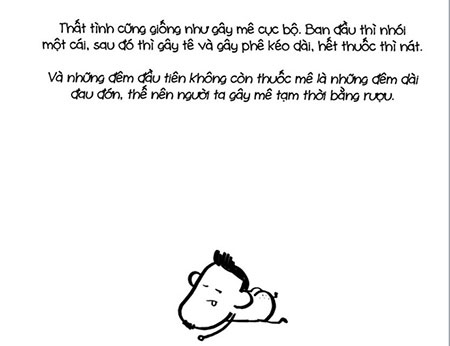 Tương tự những người bệnh cần gây mê, người mới chia tay thường tìm mọi cách để xua đi cảm giác buồn bã, đau đớn. |