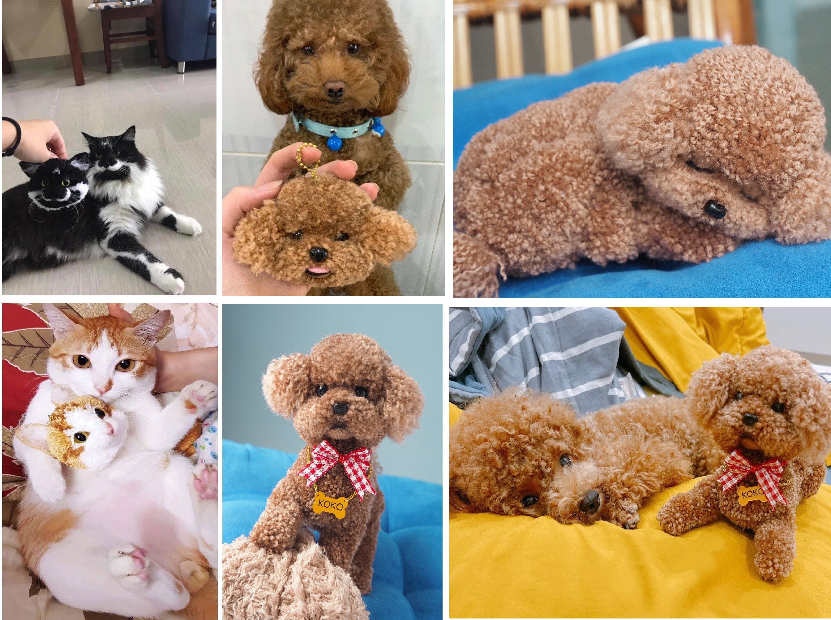 Các sản phẩm từ pompom rất đa dạng với nhiều chủ đề như nhân vật hoạt hình, đồ ăn, thú cưng… Nổi bật nhất là tạo hình pompom động vật. Khác với những quả bông trên mũ áo len, pompom thú cưng được tạo ra bằng cách cuốn, sắp xếp tỉ mỉ các sợi len nhiều màu sắc tạo mảng màu lông sinh động.