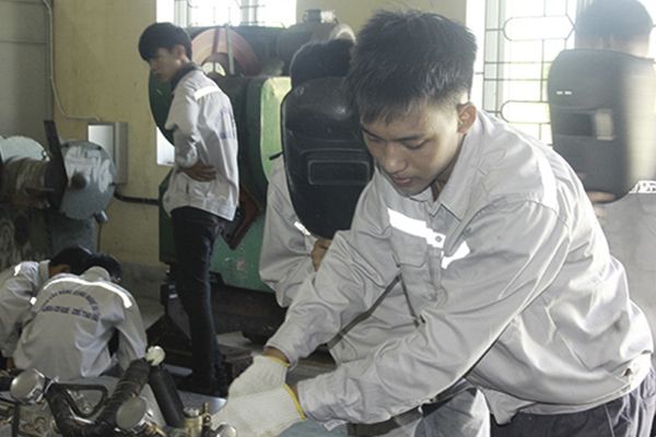 Sơn theo học nghề hàn - một nghề khá "hot" trong thị trường lao động nhưng không quá nhiều người lựa chọn vì thợ hàn đòi hỏi nhiều thứ về sức khỏe, sự nỗ lực, chăm chỉ và đam mê mới có thể phát triển được trong nghề.
