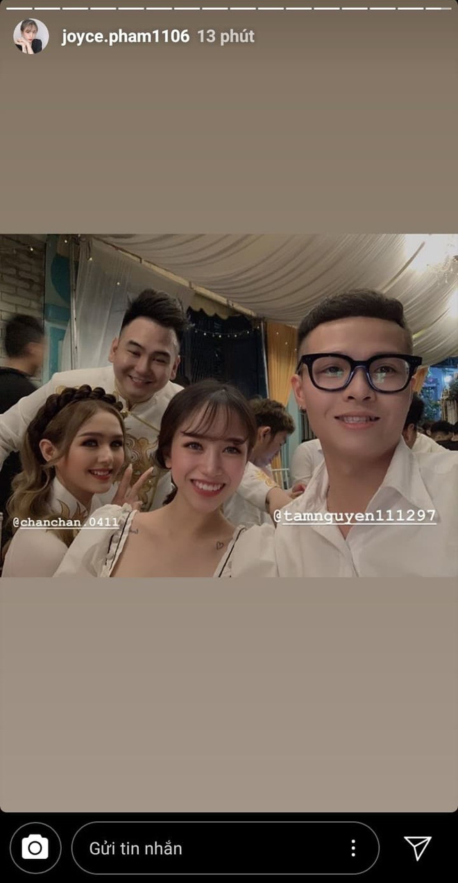 Sở dĩ có màn mong chờ này là bởi ai cũng biết vợ chồng Joyce Phạm - Tâm Nguyễn và vợ chồng Xemesis - Xoài Non có mối quan hệ khá thân thiết. 2 cặp đôi thỉnh thoảng khoe ảnh tụ tập, hẹn hò và quay vlog cùng nhau. Trước đó, tại đám hỏi của "em yêu" Xoài Non, Joyce Phạm cũng xuất hiện và nhiệt tình check-in nên đương nhiên là không thể vắng mặt trong đám cưới sắp tới rồi.