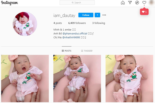 Cô nhóc vừa lọt lòng đã có riêng cho mình một lực lượng người hâm mộ hùng hậu nhờ seri biểu cảm nhí nhố. Bên cạnh đó, người ta cũng không ngừng gửi lời khen đến ông bố trẻ Văn Đức qua loạt story chơi đùa cùng con được vợ đăng tải.