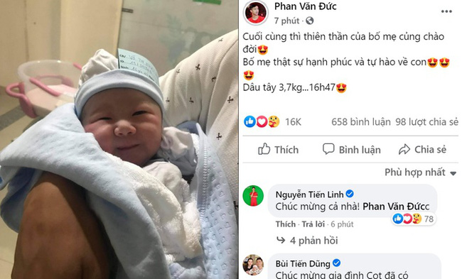 Dù vừa mới về chung một nhà hồi đầu năm 2020 thôi nhưng Phan Văn Đức và Võ Nhật Linh đã chính thức đón con đầu lòng vào lúc 16h47 phút chiều 7/8. Tiền vệ Sông Lam Nghệ An gần như được nhiều người ủng hộ và tự tin hơn sau khi lập gia đình. Trên trang cá nhân, Văn Đức cũng thường xuyên đăng tải ảnh vợ.