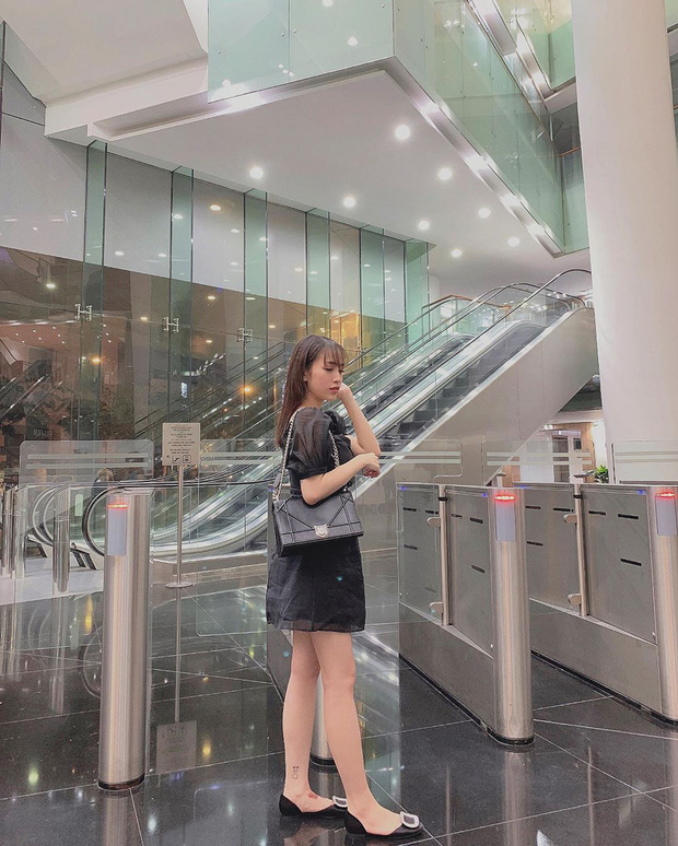 Con gái Minh Nhựa lên đồ với áo thun đen oversized giấu quần và diện thêm chiếc túi Chanel Flap Bag hơn 108 triệu đồng.