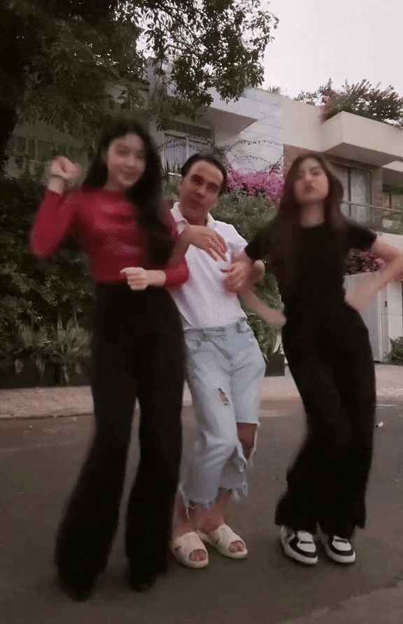 Theo đó, MC Quyền Linh cùng với 2 con gái quay clip nhảy theo trend khá vui vẻ. Trong clip này, nam nghệ sĩ mặc quần jeans rách, đi dép tổ ong giản dị còn 2 con gái Lọ Lem - Hạt Dẻ ăn mặc trau chuốt hơn. Như mọi khi, Lọ Lem và Hạt Dẻ nhận được nhiều ý kiến khen xinh và ngưỡng mộ vóc dáng cân đối mà không nhắc nhiều đến MC Quyền Linh.