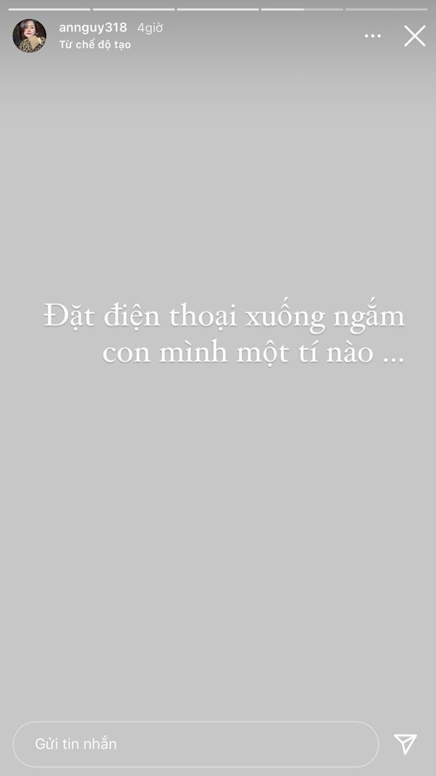 Nhưng đó chỉ là phần “dạo đầu” để chuẩn bị cho màn “quay xe”, troll con gái cực gắt của An Nguy mà thôi. Xem ảnh con nhà người ta vậy đủ rồi, giờ thì: “Đặt điện thoại xuống ngắm con mình một tí nào…”.