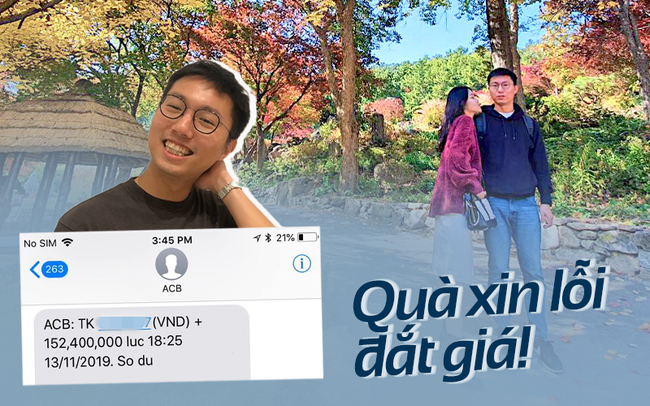 "Người yêu mình chẳng bao giờ tặng quà quá đắt đỏ đâu vì cả hai thật sự cũng không giàu có. Anh là người nước ngoài nên tiền thường được chuyển vào tài khoản của mình. Lần đó, mình giận anh nên anh chuyển tiền rồi nhắn là: 'Anh xin lỗi'.