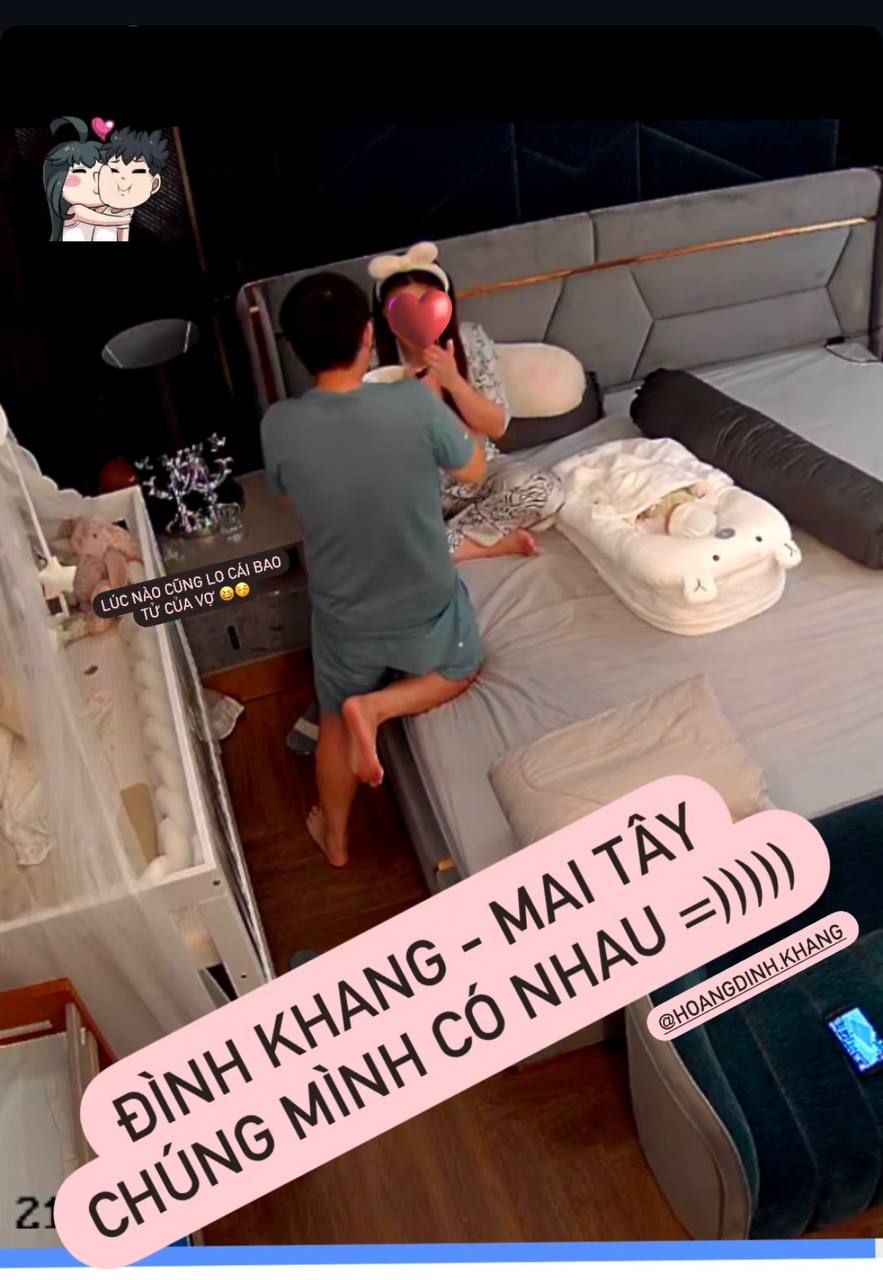 Cô nàng cho biết buổi sáng khi vào làm vệ sinh cá nhân, vô tình mở camera lên xem chồng và con trai đã thức hay chưa thì thấy thiếu gia Đình Khang đang chăm con cực khéo. “Không có bà nội, bà ngoại hay bà vú, lúc con khóc là tự bồng con lên cho con ti rồi ru con ngủ luôn. Kêu vợ mới sinh ngủ sớm đi có gì để anh lo. Sáng dậy bà vú nói chồng tui lo hết thiệt, không ngờ ảnh chăm em bé khéo vậy luôn. 10000 điểm”, Mai Tây bày tỏ.