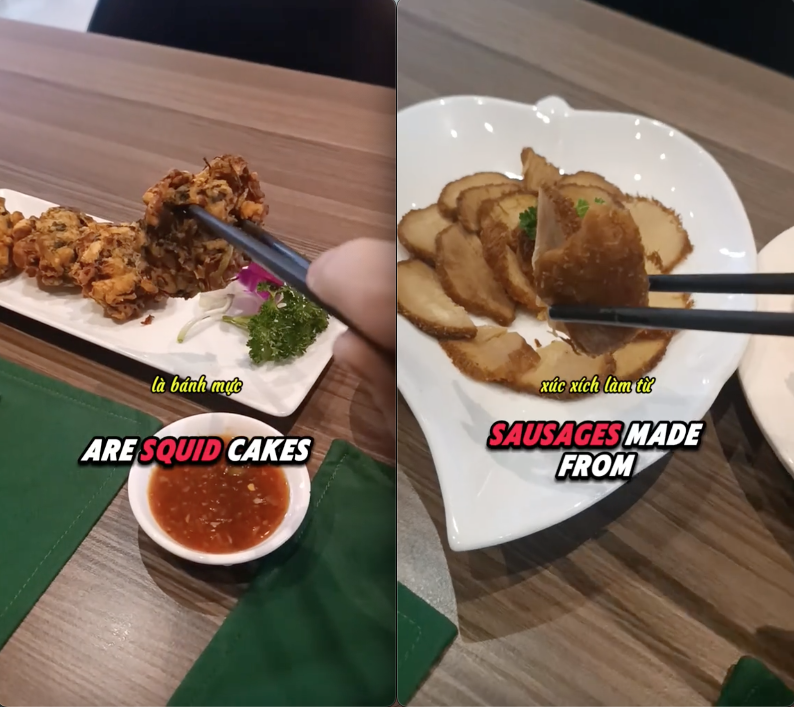 Có thể kể đến như bánh mực chay - một món ăn làm từ nấm nhưng có kết cấu và hương vị hấp dẫn. Dù chưa từng ăn mực bao giờ, nhưng anh Tây này vẫn bị chinh phục bởi độ giòn và đậm đà của món bánh mực chay. Hay món xúc xích chay làm từ nấm, cơm cháy ăn kèm sốt cũng là một sự kết hợp đầy sáng tạo mà anh chưa từng thử ở bất cứ đâu.