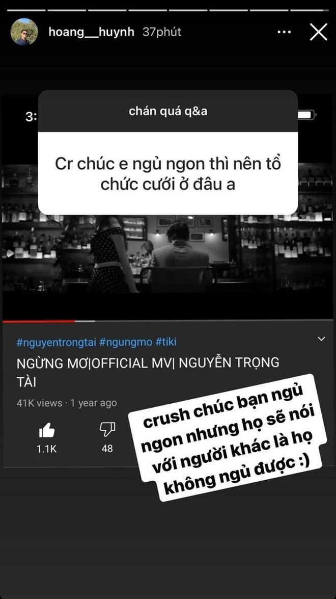 Cụ thể khi được hỏi "Cr bơ thì sao a?". Anh chàng trả lời cực "tỉnh": "Làm sinh tố bơ chắc sẽ ngon hơn crush". Không dừng lại ở đó, tiếp tục với câu chuyện crush, khi được một fan khác vào hỏi: "Cr chúc em ngủ ngon thì nên tổ chức cưới ở đâu anh?", Hoàng Huỳnh đã có màn tư vấn "đi vào lòng người": "Crush chúc bạn ngủ ngon nhưng họ sẽ nói với người khác là họ không ngủ được."