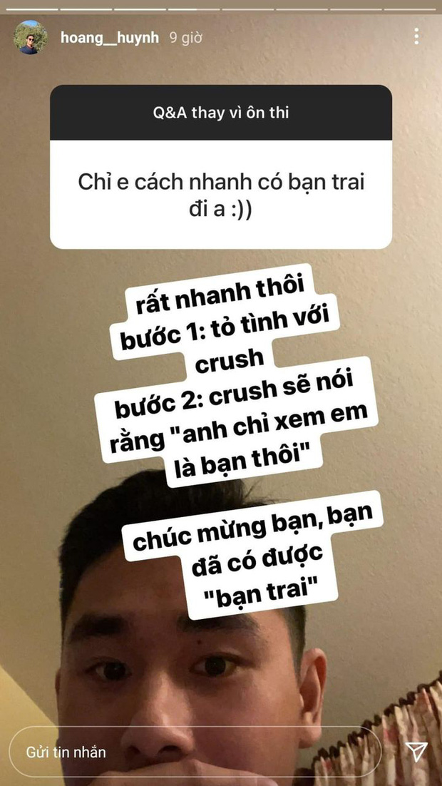 Cụ thể, anh chàng đã có một màn tư vấn "để đời" khi được hỏi làm sao để nhanh có bạn trai. Phương án được Hoàng Huỳnh đưa ra chính là: