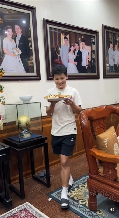 Trên trang cá nhân của mình, Quang Phong thỉnh thoảng khoe những đoạn clip đu trend trên TikTok cùng vợ. Đặc biệt nhất, anh trai Quang Hải rất thích nấu ăn, thường xuyên vào bếp trổ tài nấu nướng cho cả nhà. Bên cạnh đó, Hoài Linh - bà xã Quang Phong cũng hay khoe những khoảnh khắc được chồng cưng chiều như mua quà tặng, đưa đi shopping, phụ giúp chăm con khiến dân tình khen nức nở.