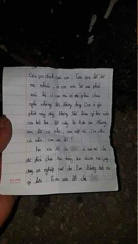 Tối ngày 19/8, người dân lưu thông qua Cầu 1 khu vực xã Đông Xá, huyện Vân Đồn, tỉnh Quảng Ninh hốt hoảng khi phát hiện bức thư tuyệt mệnh cùng với 1 đôi dép màu đen trên thành cầu. Mở bức thư ra thì thấy có dòng chữ: "Con xin lỗi bố mẹ, vì con mà bố mẹ phải xấu hổ, vì con mà bố mẹ phải nghe những lời không hay. Con ở giờ phút này đây không thể làm gì hơn được nữa, con bất lực, lỗi là do con. Con xin lỗi cả nhà, con mệt rồi...".