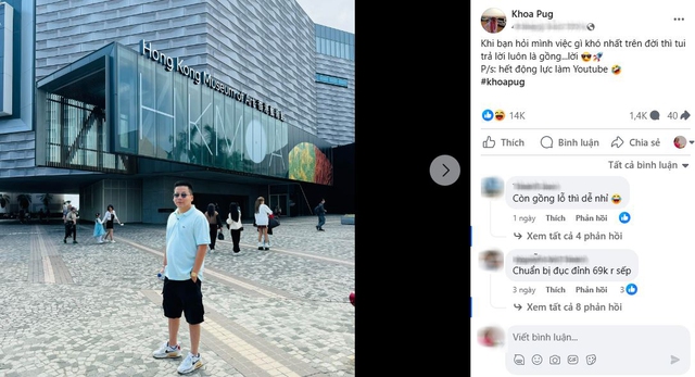 Khoa Pug "thú nhận", lý do là do anh chàng... quá nhiều tiền. Anh chàng còn hóm hỉnh nói, việc khó không phải là căng mình gồng lỗ, mà là gồng lời.