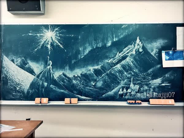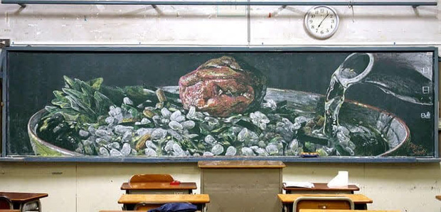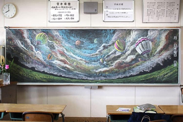 Chỉ với một chiếc bảng xanh (hoặc đen), các màu sắc phấn như chúng ta vẫn thường thấy, nhưng trải qua đôi tay của các "họa sĩ" mặc đồng phục học sinh ở Nhật, mọi thứ đều sẽ trở thành những tuyệt tác nghệ thuật khiến thiên hạ trầm trồ.