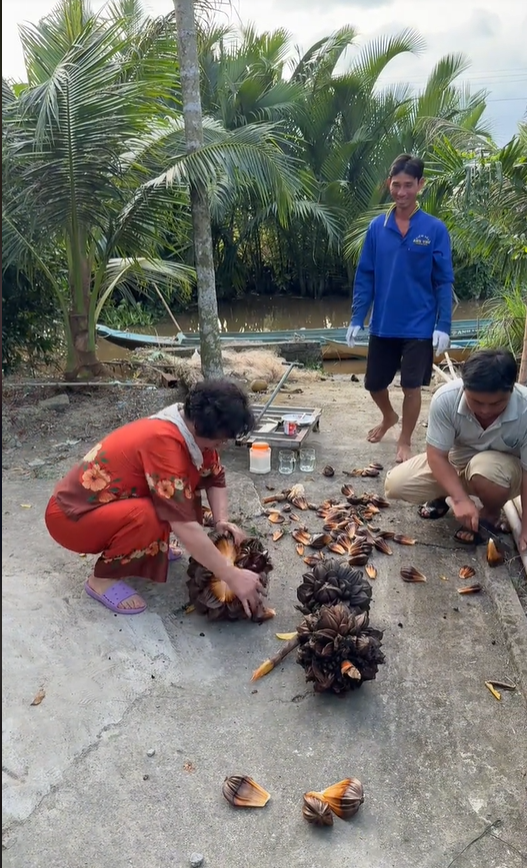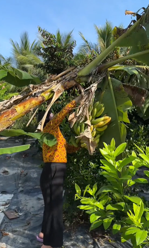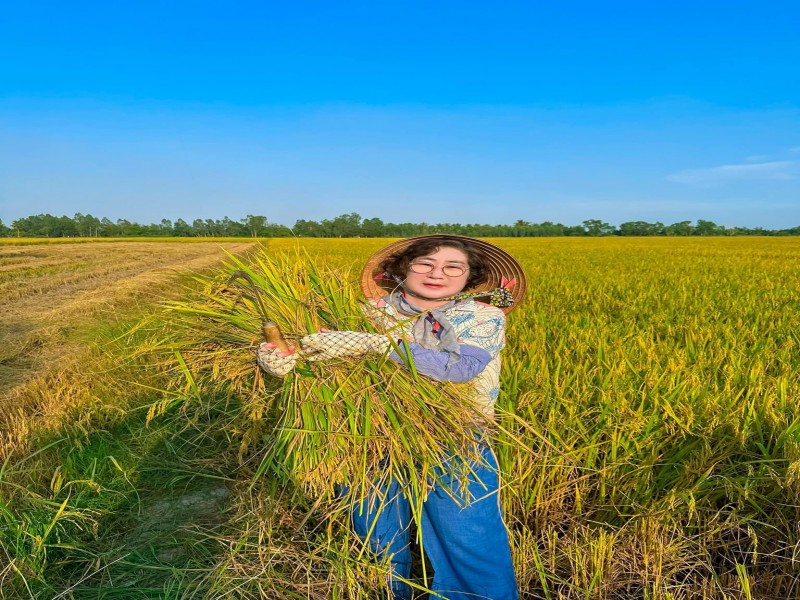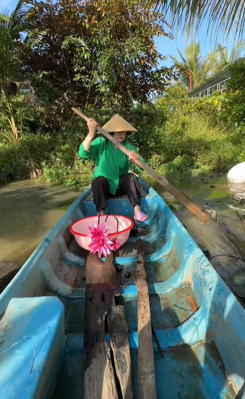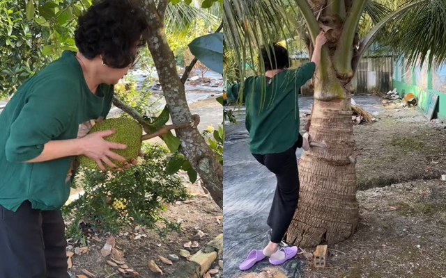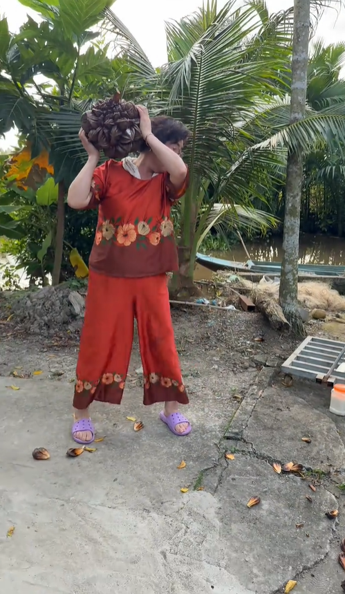 Cụ thể, dù đã ở tuổi trung niên và trước đó cũng chưa từng làm nông, song bà lại xuống ruộng cắt lúa rất thuần thục, trèo cây hái dừa, hái ối thoăn thoắt. Chưa dừng lại ở đó, bà còn ghi điểm bởi sự nhiệt thành, thân thiện. Trong clip chặt dừa nước, bà còn dành phần của trai tráng thử đập dừa nước,...