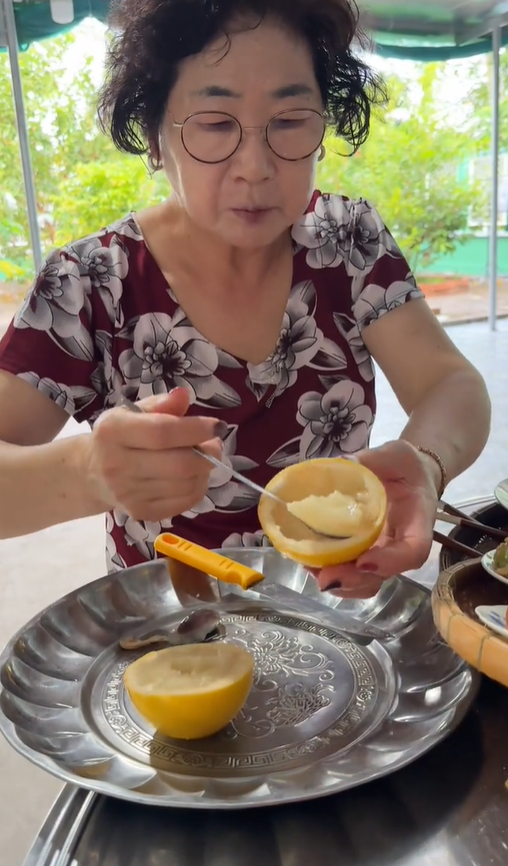 Đó là mẹ chồng của TikToker Phạm Thị Kiều Tiên (SN 1990, quê Kiên Giang). Từ cuối tháng 11, mẹ chồng Kiều Tiên (năm nay 68 tuổi) đã cùng con dâu và cháu về miền Tây ăn đám giỗ, thăm gia đình. Những tuần vừa qua, cô đưa mẹ chồng Hàn “trải nghiệm cuộc sống miền Tây”, từ ẩm thực đến văn hóa, mọi khoảnh khắc "hoà tan" của bà đều khiến dân tình cười ngất.