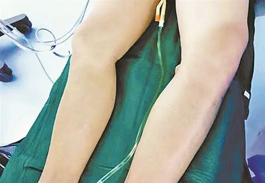 Sáng sớm ngày 7/2 vừa qua, chàng trai trẻ Tiểu Trương (22 tuổi, Trung Quốc) được mẹ đẩy vào khoa cấp cứu trên xe lăn, khuôn mặt đầy đau đớn, chân trái không thể đi lại được, từ bắp chân đến đùi đều sưng đau.