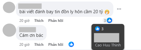 Dù chính chủ không chỉ đích danh ai, cư dân mạng bỗng nhắc đến vợ chồng Xoài Non và Xemesis phía dưới status của bác sĩ Thịnh. Bác sĩ Thịnh chỉ thả like những bình luận nhắc đến Xoài Non, Xemesis và tin đồn ly hôn đền bù 20 tỷ của cặp đôi.