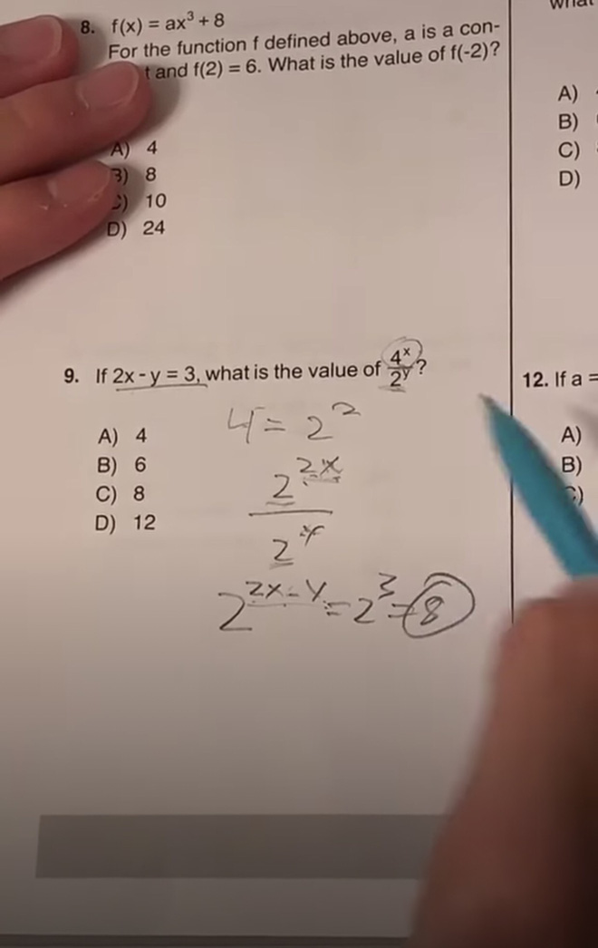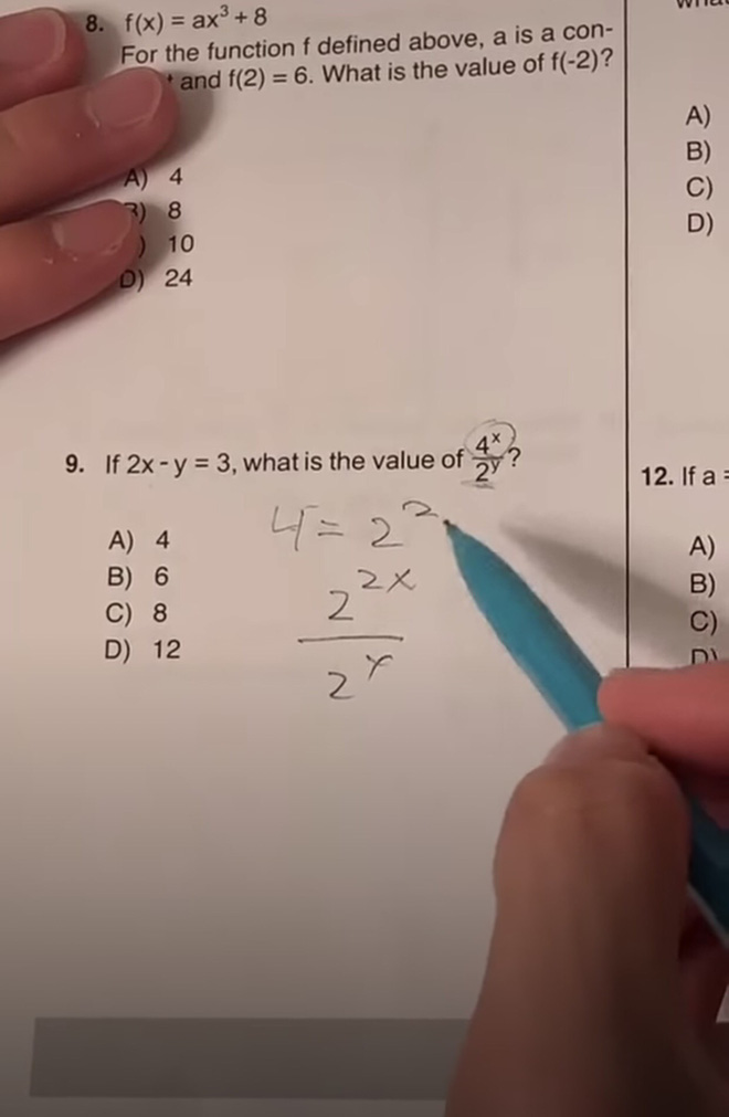 Cụ thể, một Tiktoker người Mỹ đã đăng tải cách giải "Câu hỏi khó nhất của kỳ thi SAT" với đề bài: "Nếu 2x - y = 3, thì giá trị của biểu thức 4x/2y bằng bao nhiêu?".