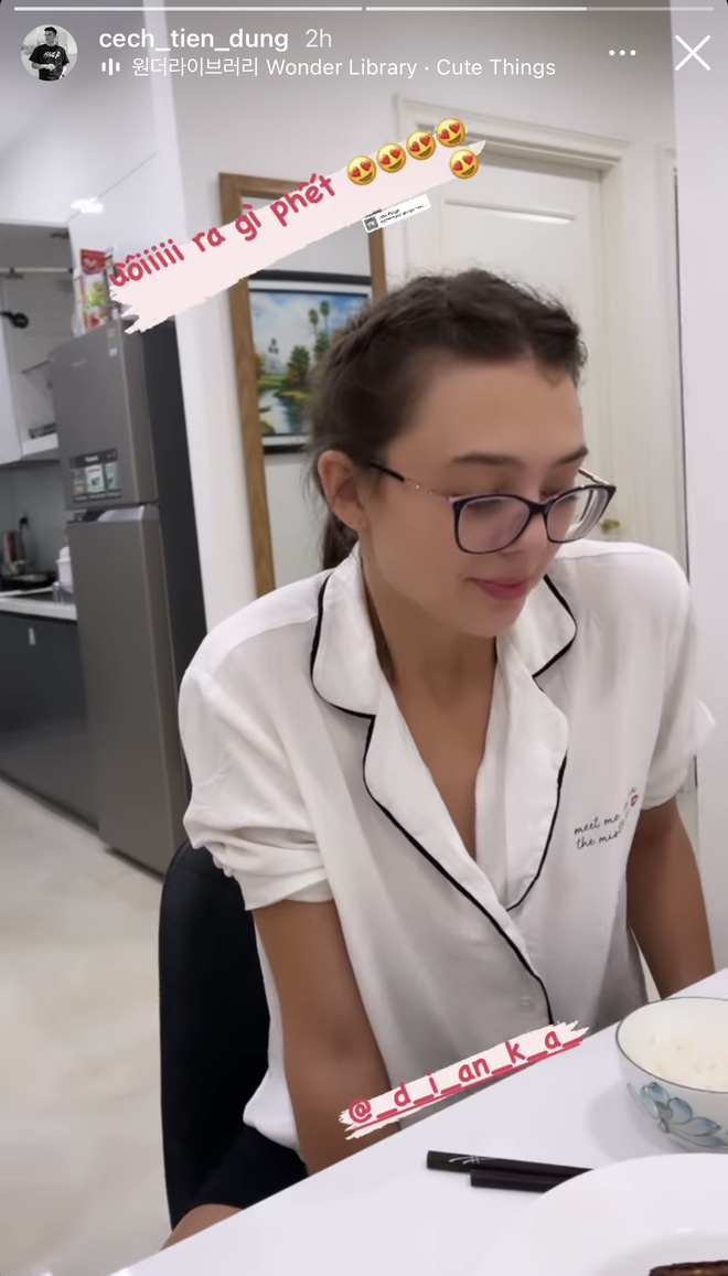 Chuyện là Dũng "gôn" vừa đăng loạt story với giọng rất tự hào khoe về việc Dianka đích thân vào bếp tập nấu món Việt. Các món ăn thì đơn giản thôi nhưng cũng đáng để trầm trồ lắm, vì Dianka vốn là người Ukraina cơ mà.