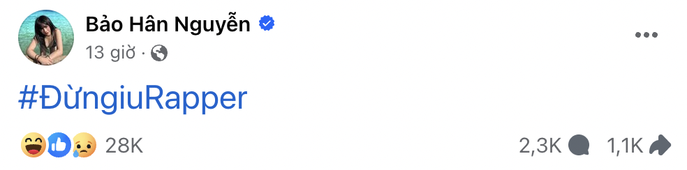 Tối 30/7, Bảo Hân Helia - bạn gái cũ của rapper Khói đã đăng status chỉ với vỏn vẹn 1 hashtag nhưng lại gây xôn xao. “#ĐừngiuRapper” (tức là: Đừng yêu rapper) - cô nàng viết. Ngoài ra Bảo Hân còn bổ sung thêm ở phần bình luận những thông tin khác như: #ngườitừngtrải, #nhấtlàmấyanhhaylàmnhạcsuy, #xinlỗiBRay.