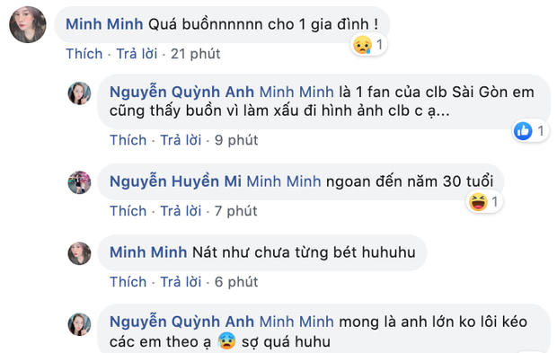 Quỳnh Anh cho biết với tư cách fan của CLB Sài Gòn, cô nàng rất buồn và cảm thấy cần có trách nhiệm chia sẻ câu chuyện dù nếu lời của vợ Ngọc Duy là đúng thì anh đang làm xấu hình ảnh của đội bóng Sài Gòn FC khi mang danh đội trưởng.